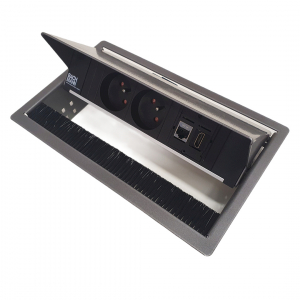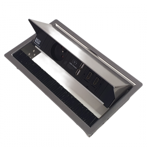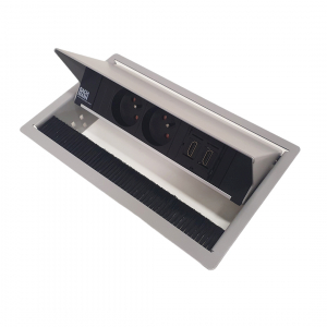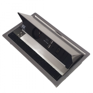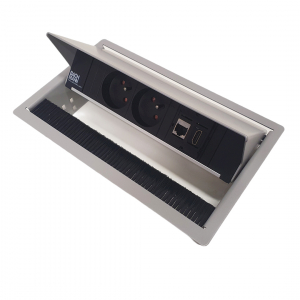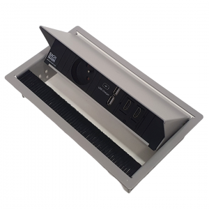 - Powerframe à couvercle, 3 prises 230 V avec broche de terre, gris argenté