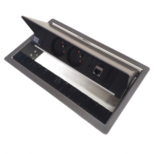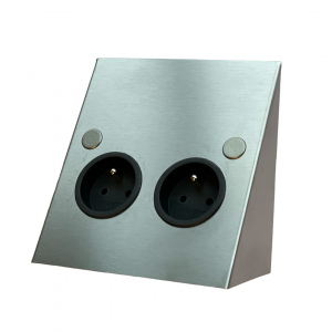 - Bloc multiprise Desk 2, 2 prises, 2 ports USB et module personnalisable aluminium/noir.