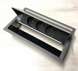 - Bloc multiprise Desk 2 à monter sur plateau, 1 prise, 2 ports USB aluminium/noir.
