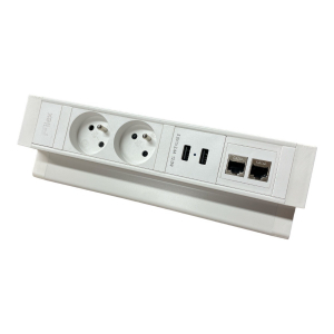 - Bloc Exit de bureau, blanc, en saillie, 2 prises, 2 ports USB et 2 ports internet CAT6